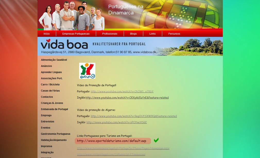 O Portal de Turismo tambem é recomendado na Dinamarca, veja mais em Portugueses na Dinamarca -> Links -> Turismo -> Portugal ou nesta Imagem